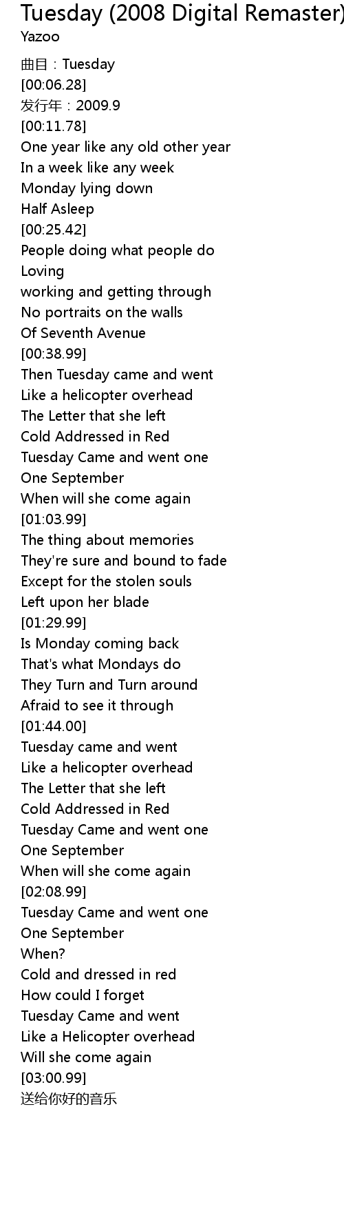 | 歌曲 | Tuesday (2008 Digital Remaster) |