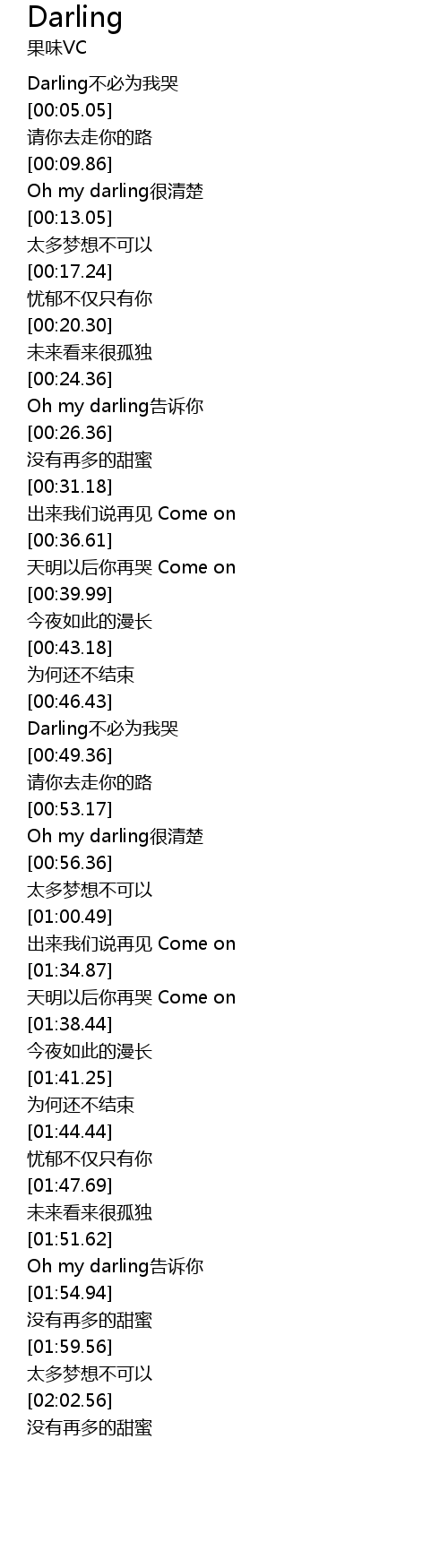 | [02:03.63] | méi yǒu zài duō de tián mì |