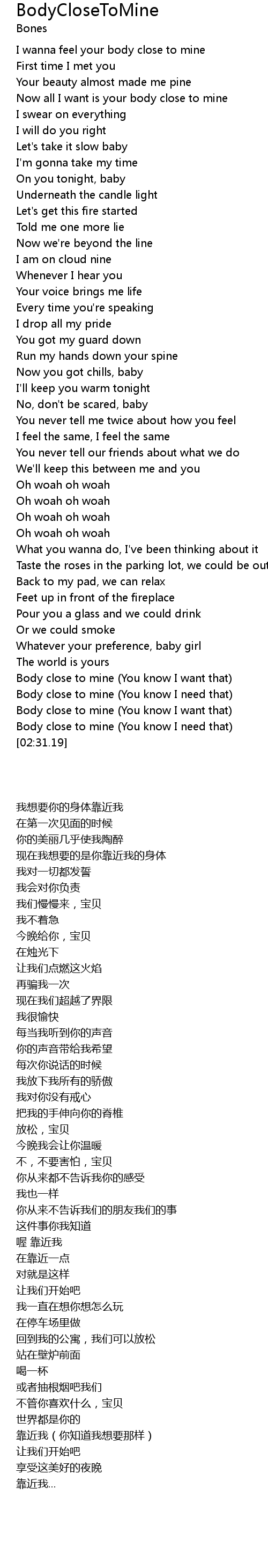 Body close to mine (You know I need that) |