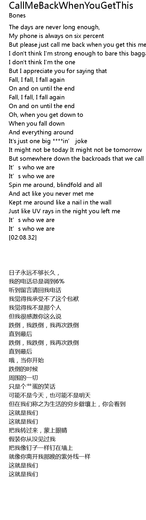 | 歌曲 | CallMeBackWhenYouGetThis |