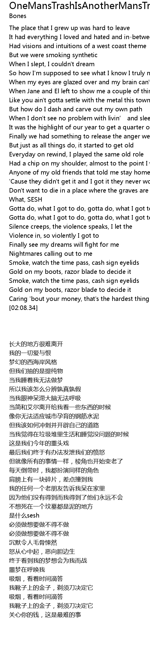 | [02:04.70] | Caring 'bout your money, that's the hardest thing |