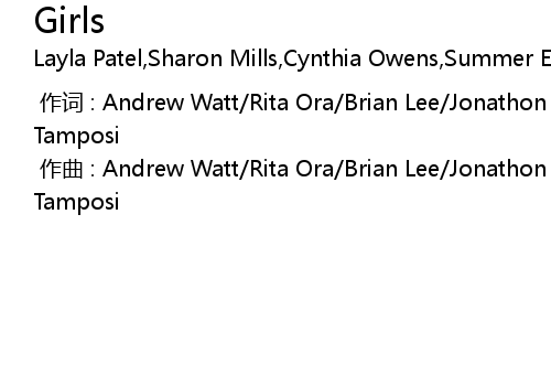 | [00:00.00-1] | zuo ci : Andrew Watt Rita Ora Brian Lee Jonathon Coffer Alexanda Tamposi |