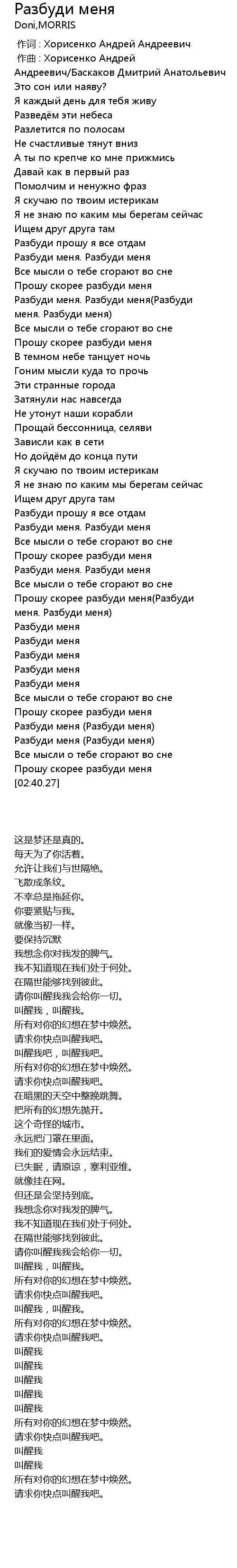 | [02:36.91] | Прошу скорее разбуди меня |