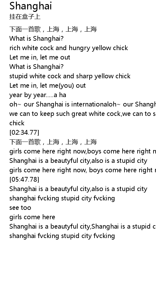 | [07:55.40] | Shanghai is a beautyful city,Shanghai is a stupid city |