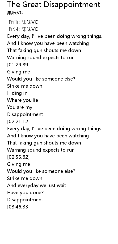 | [03:29.08] | Disappointment |