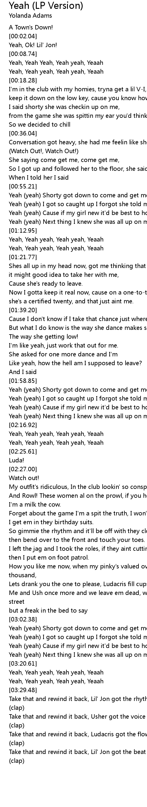 Take that and rewind it back, Lil' Jon got the rhythm make ya booty go (clap) |