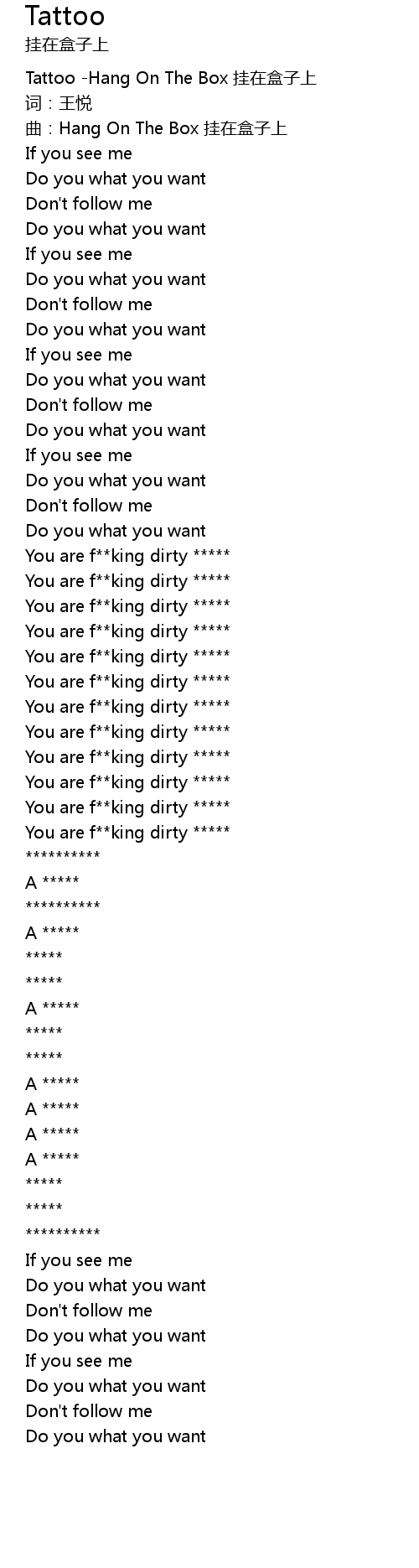 | [00:00.383] | Tattoo Hang On The Box guà zài hé zi shàng |