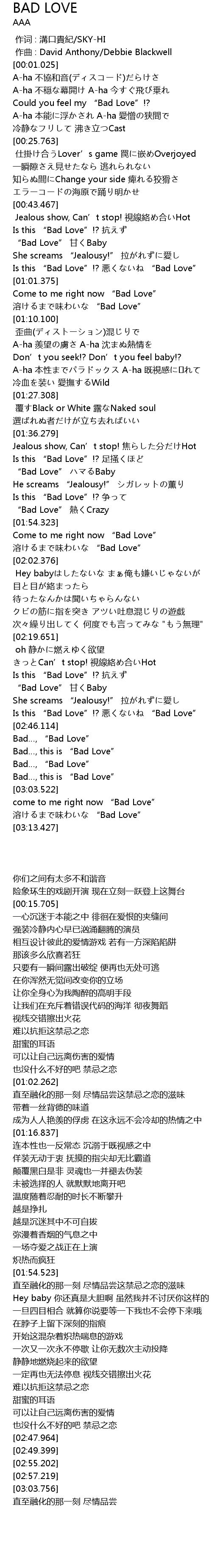 | [00:50.452] | “Bad Love” 甘くBaby |