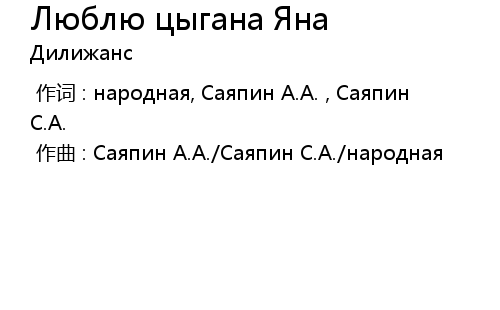 | 歌曲 | Люблю цыгана Яна |