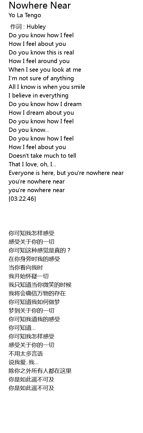 | [02:59.20] | Everyone is here, but you' re nowhere near |