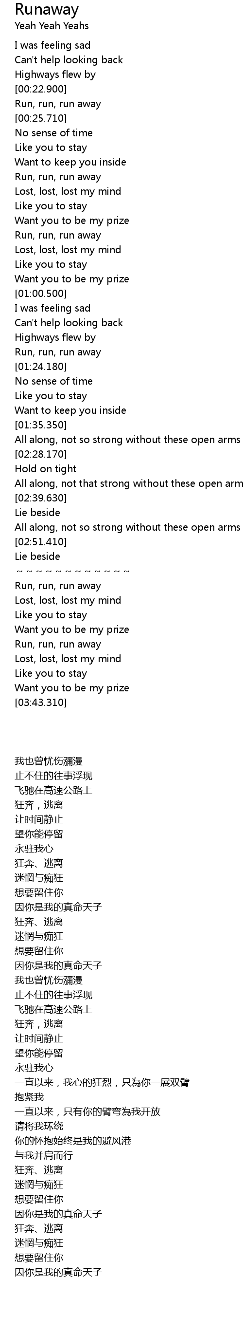 | [03:18.900] | Run, run, run away |