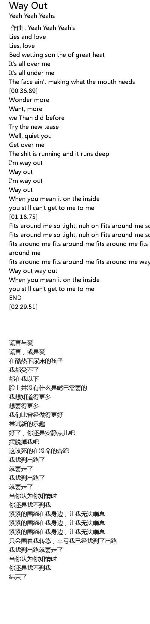 | [00:00.00] | 作曲 : Yeah Yeah Yeah's |