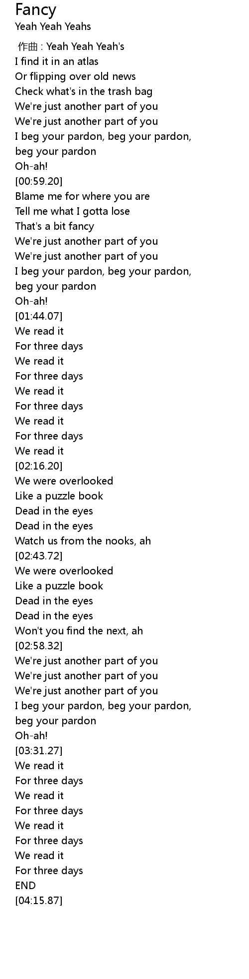 | [00:00.00] | 作曲 : Yeah Yeah Yeah's |