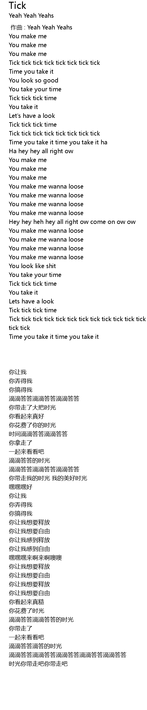 | [00:00.00] | 作曲 : Yeah Yeah Yeahs |