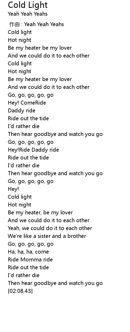 | [00:00.00] | 作曲 : Yeah Yeah Yeahs |