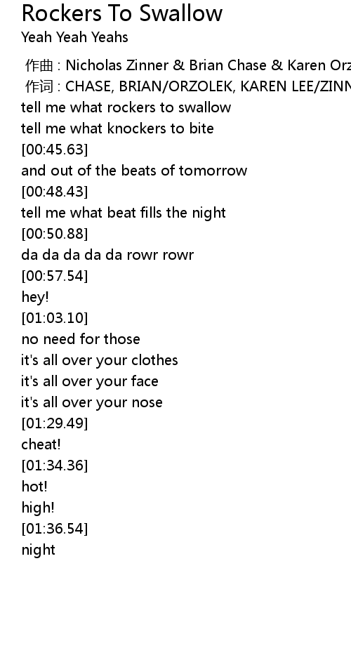 | [00:00.00] | 作曲 : Nicholas Zinner & Brian Chase & Karen Orzolek |