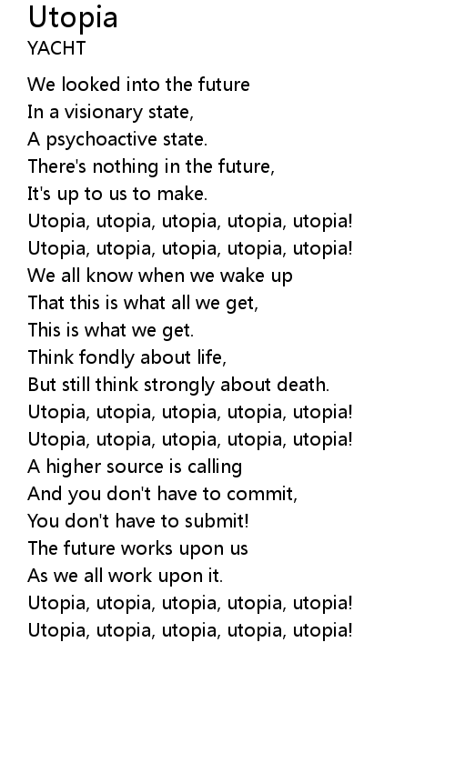 Utopia, utopia, utopia, utopia, utopia! |