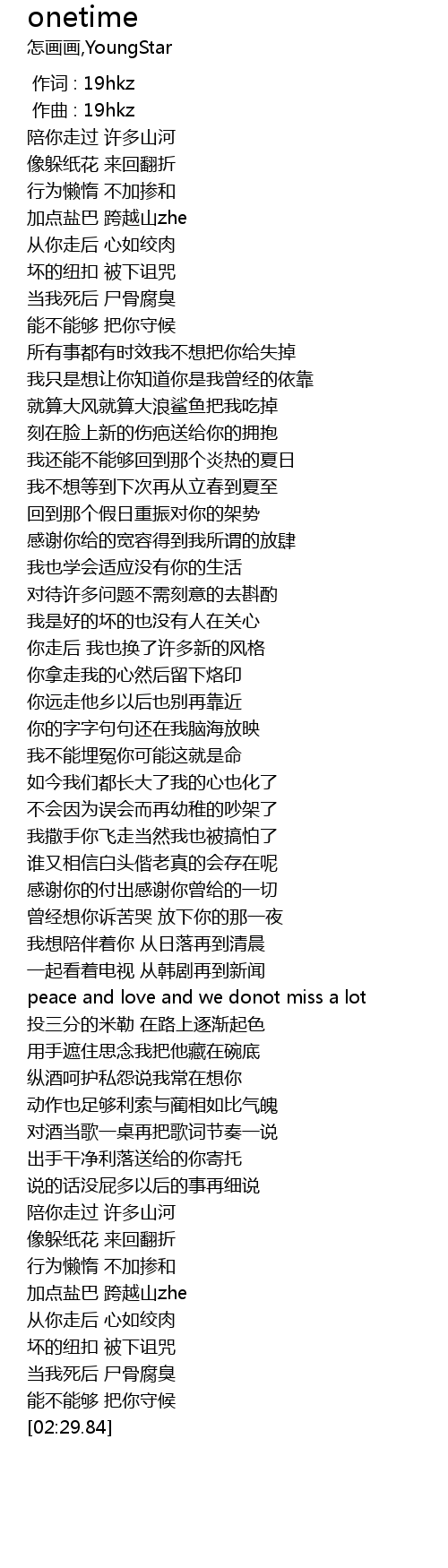 | [00:00.00] | 作词 : 19hkz |