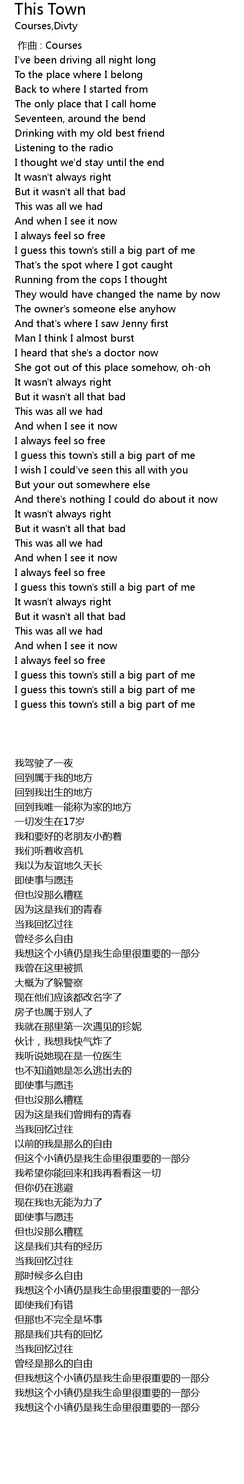 | [02:36.987] | 我想这个小镇仍是我生命里很重要的一部分 |