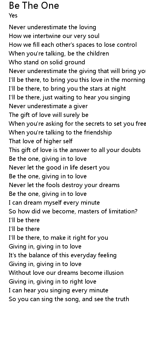 Be the one, giving in to love |