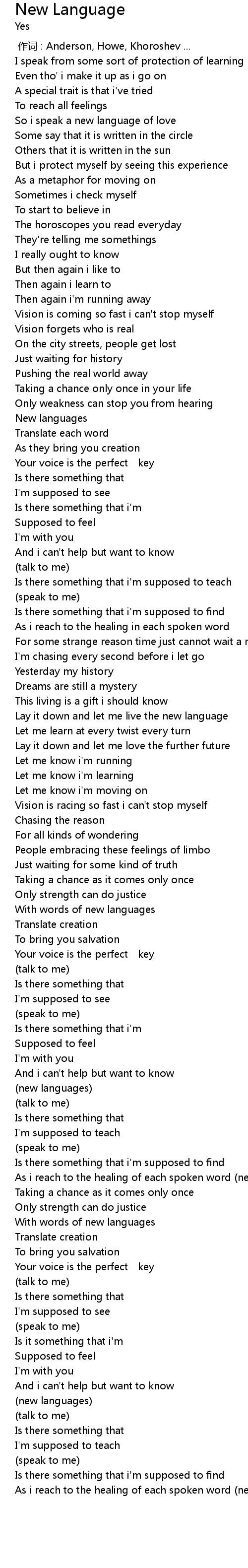 | [00:00.00] | 作词 : Anderson, Howe, Khoroshev ... |