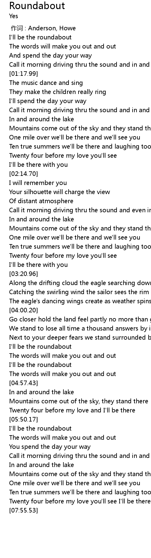 | [00:58.44] | I'll be the roundabout |