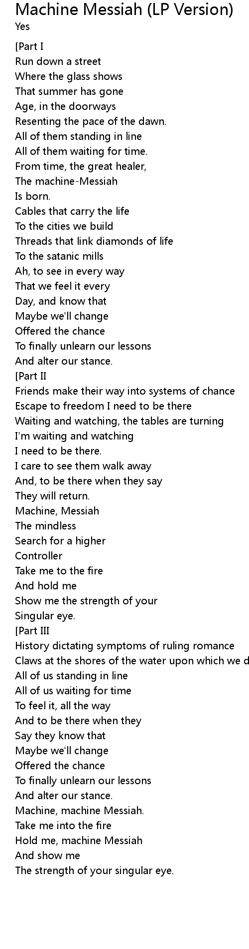 Machine, machine Messiah. |