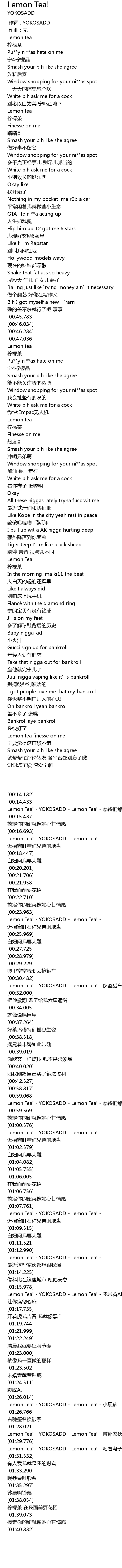 | [01:31.281] | Lemon Tea! - YOKOSADD - Lemon Tea! - 叼着电子烟像在数钞票 |