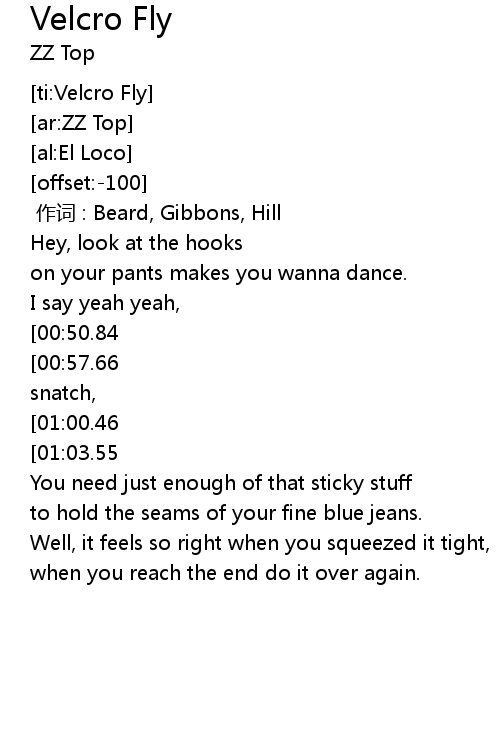 | [00:38.37][01:00.46][01:58.09] | do the velcro fly, |