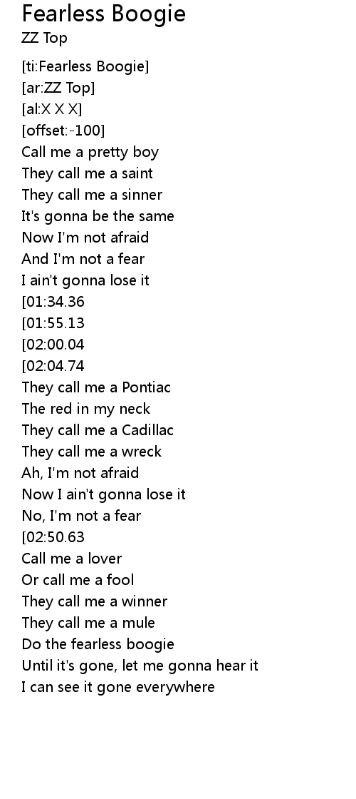 | [00:49.13][01:55.13] | To do the fearless boogie |