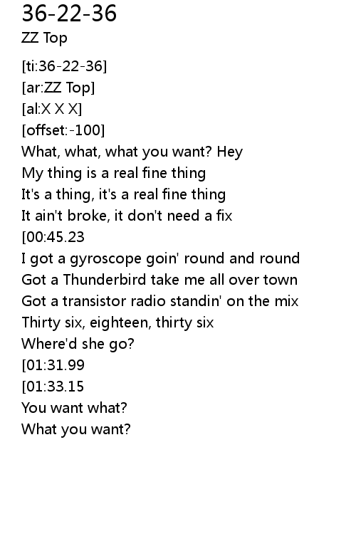 | [00:25.28][00:45.23] | Thirty six, twenty two, thirty six |