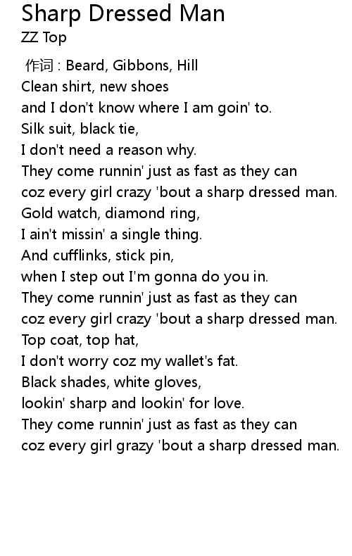 | [01:12.09] | coz every girl crazy ' bout a sharp dressed man. |