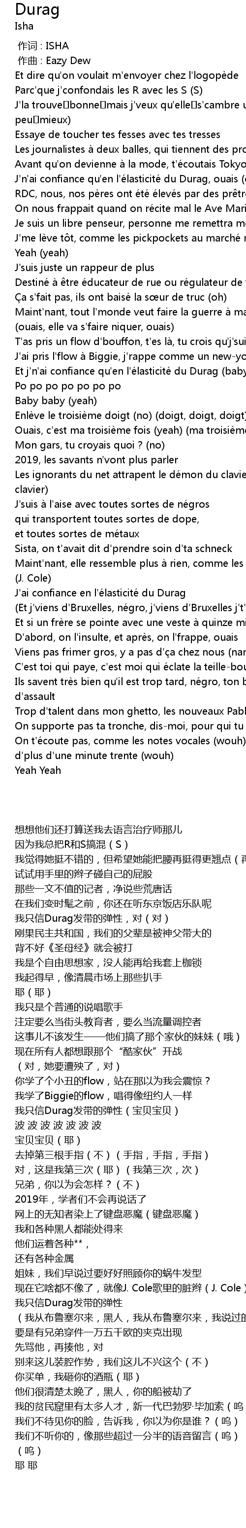 | [01:40.48] | J' ai confiance en l'é lasticité du Durag |