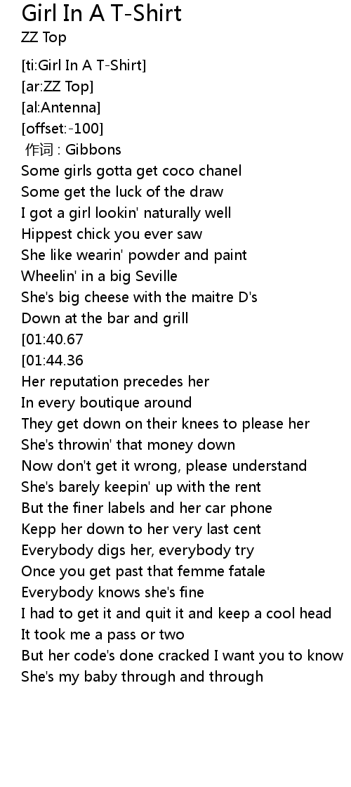 | [01:05.56][01:40.67][02:56.90] | Just a girl in a t-shirt |