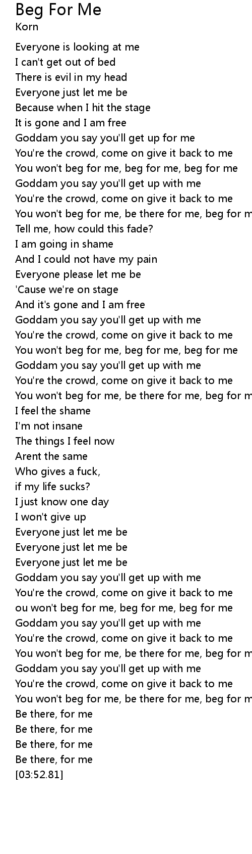 | [03:01.43] | ou won't beg for me, beg for me, beg for me |