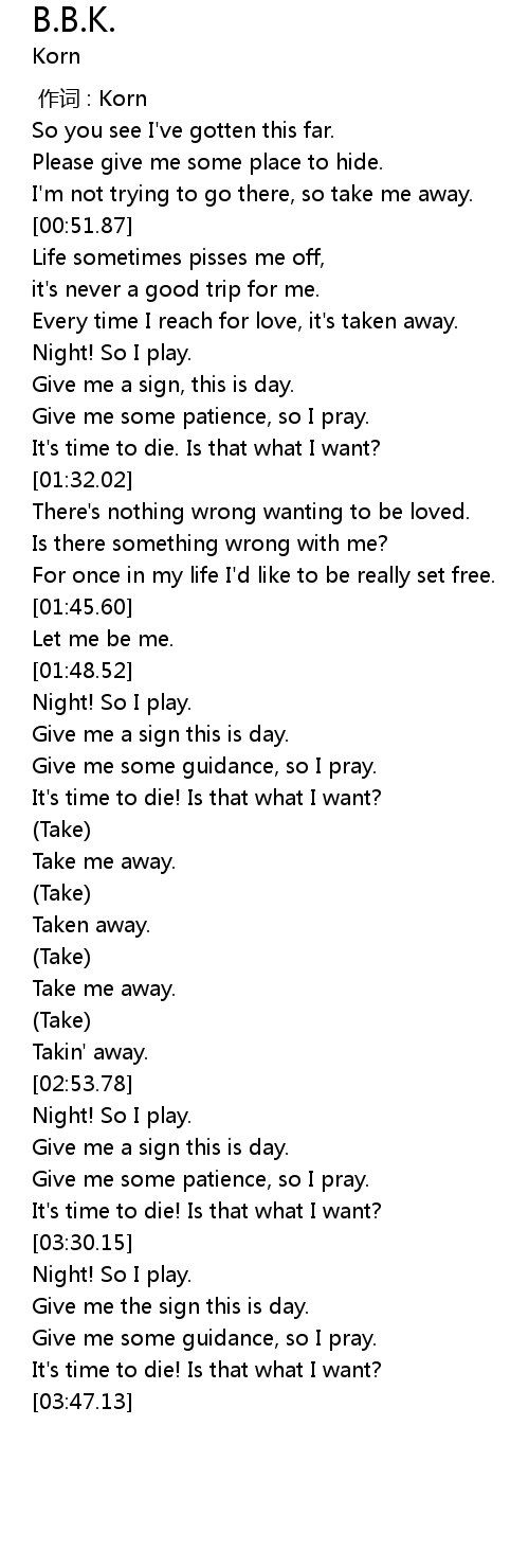 | [00:00.00] | 作词 : Korn |