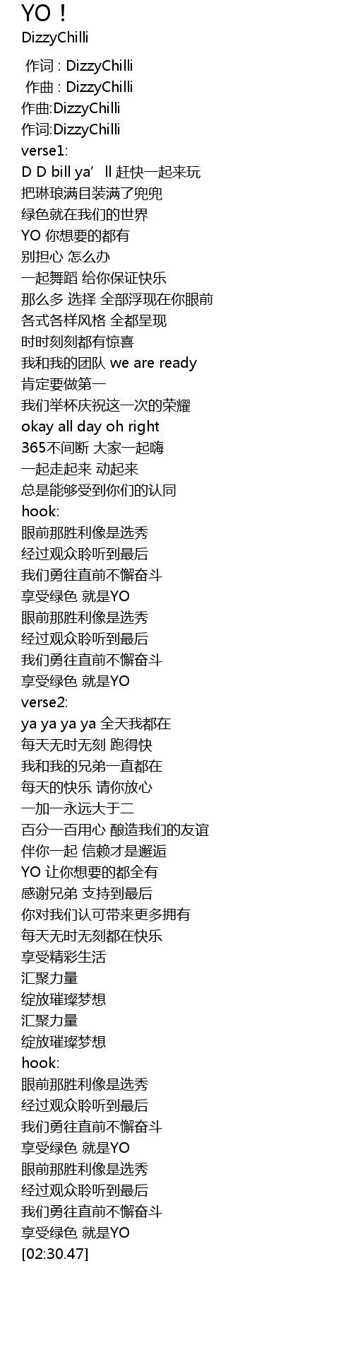 | [02:25.63] | xiǎng shòu lǜ sè jiù shì YO |