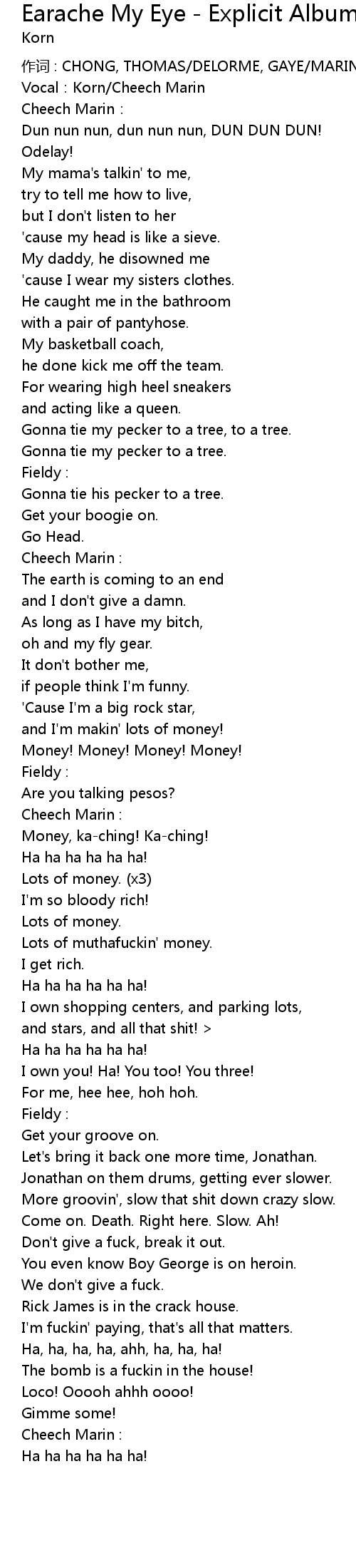 | 歌曲 | Earache My Eye - Explicit Album Version |