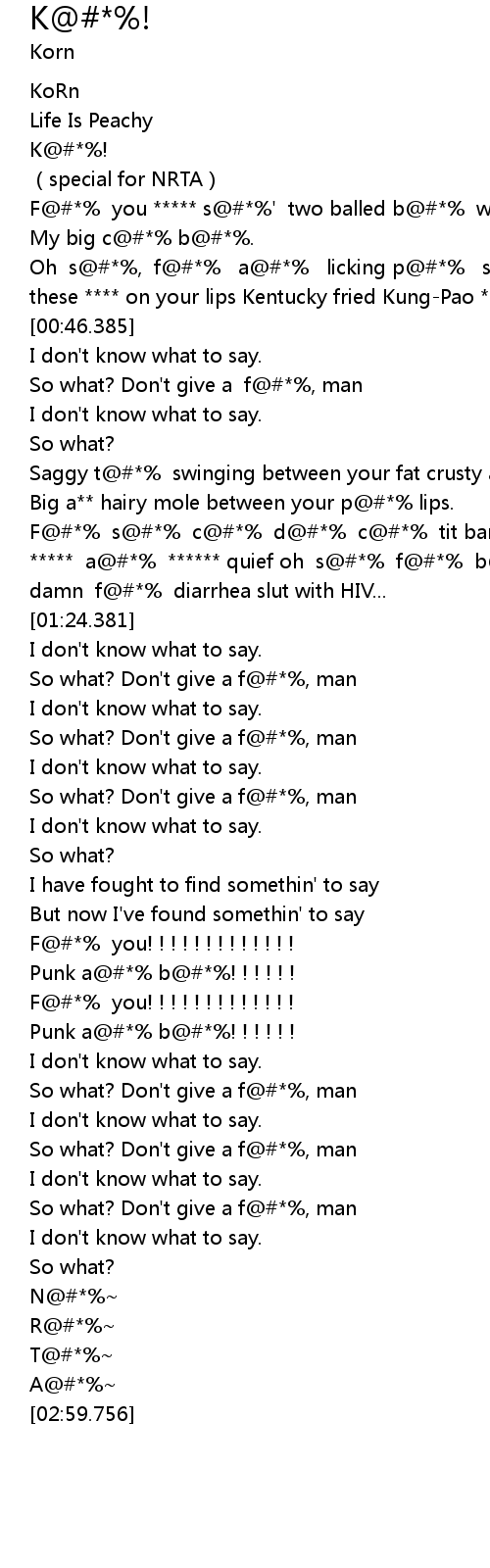 | [02:21.406] | F@#*% you! ! ! ! ! ! ! ! ! ! ! ! ! |
