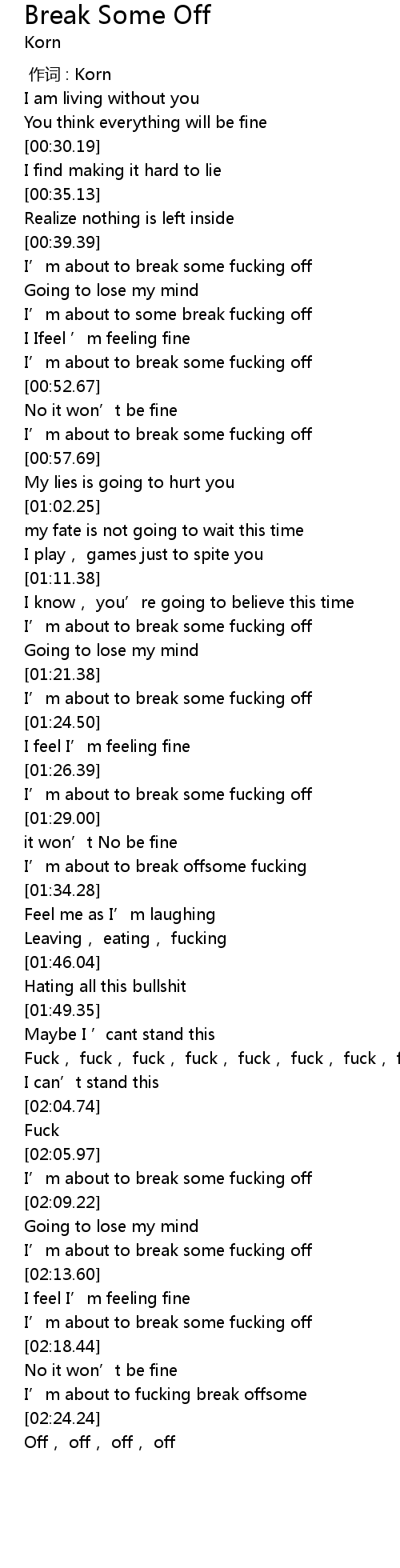 | [01:53.85] | Fuck, fuck, fuck, fuck, fuck, fuck, fuck, fuck, fuck |