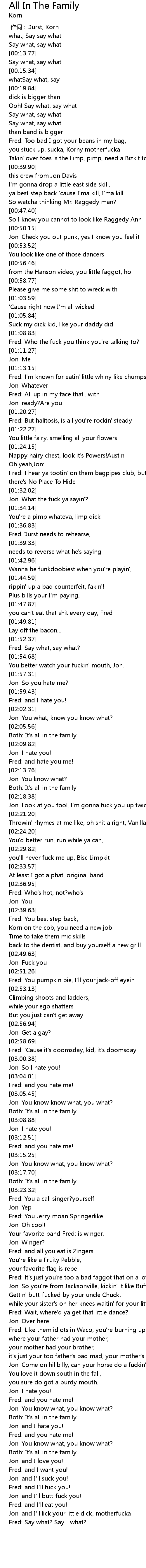 | [03:33.75] | Jon: and I'll lick your little dick, motherfucka |