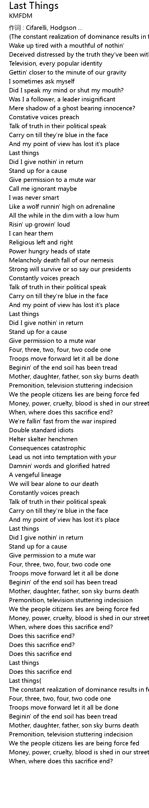 | Does this sacrifice end? | |