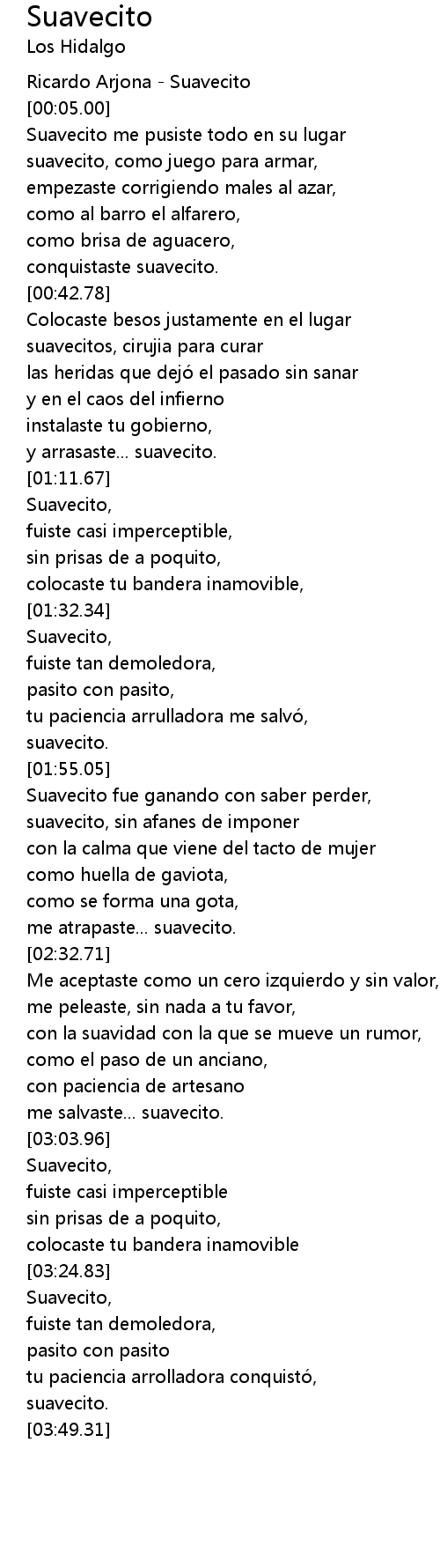 | [00:02.00] | Ricardo Arjona Suavecito |