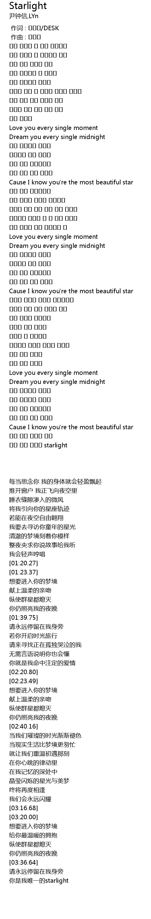 | [03:50.64] | starlight |