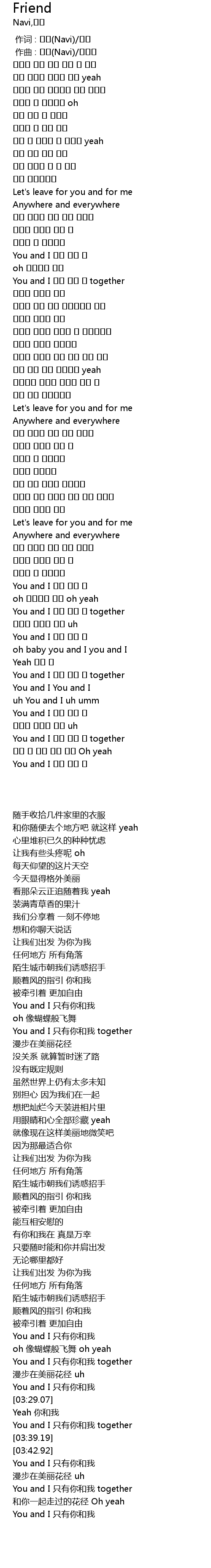 | [03:59.20] | 너와 나 함께 걷는 꽃길 Oh yeah |