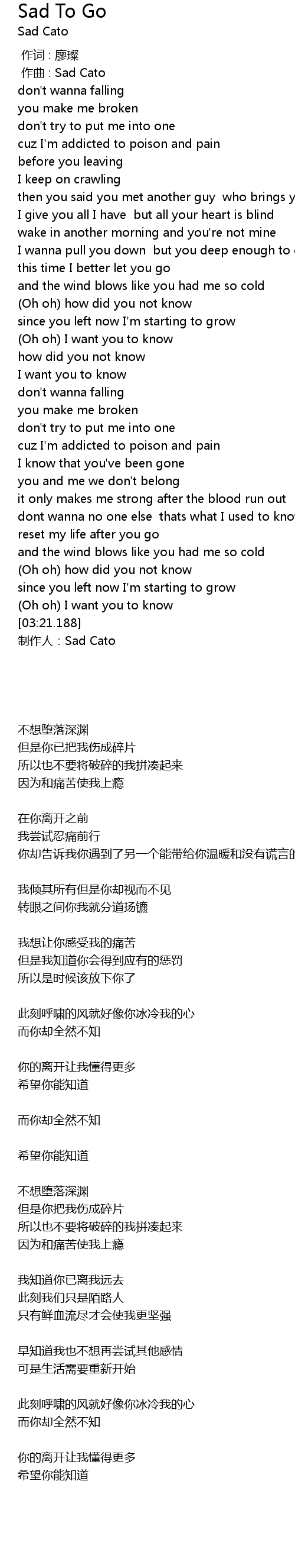 | [00:01.000] | zuò qǔ : Sad Cato |