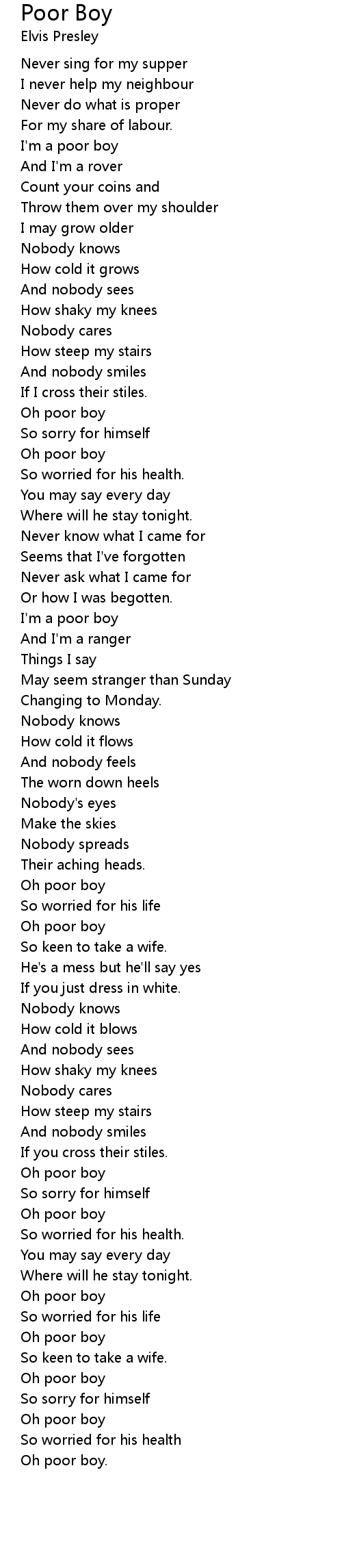 I'm a poor boy