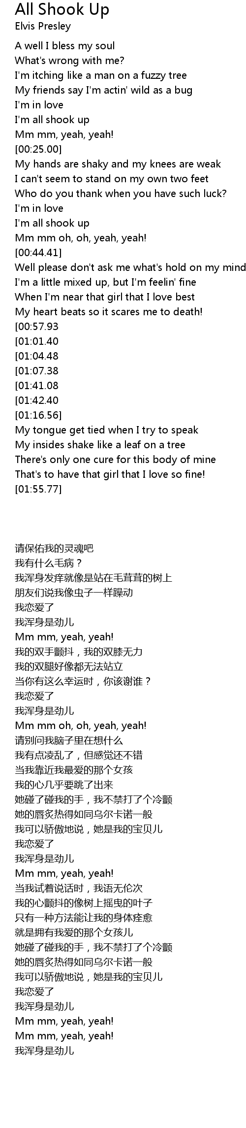[01:54.01][01:41.08][01:09.39] I'm all shook up