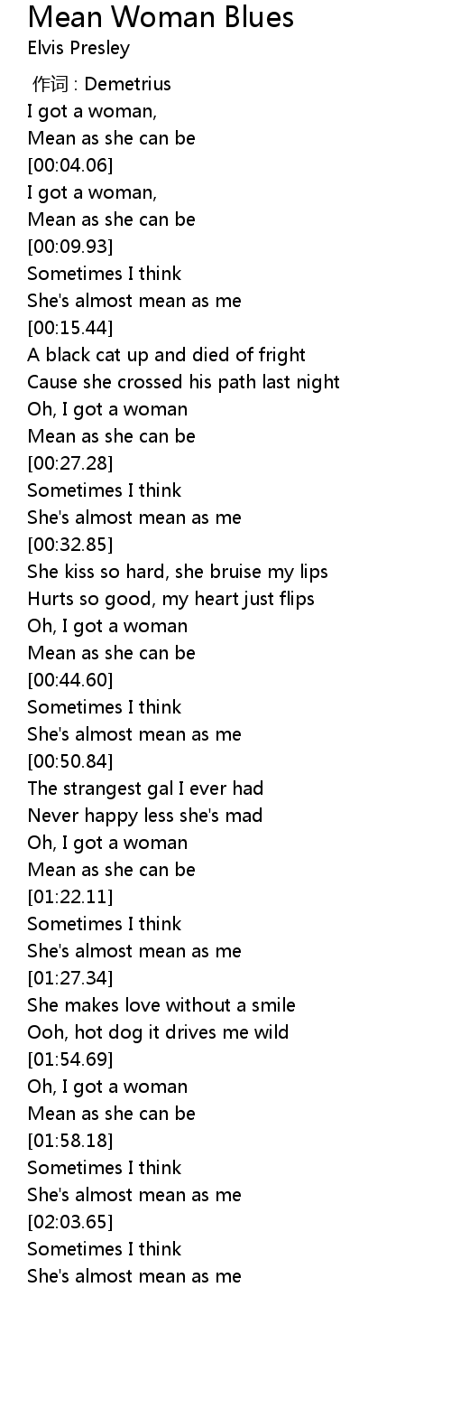 | [02:01.34] | She's almost mean as me |