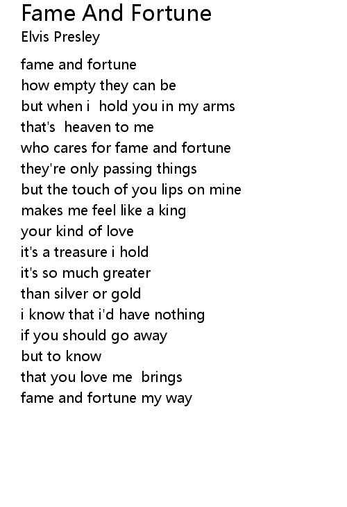 | who cares for fame and fortune | |